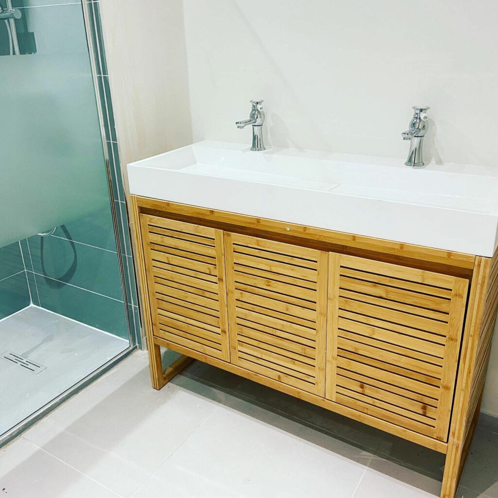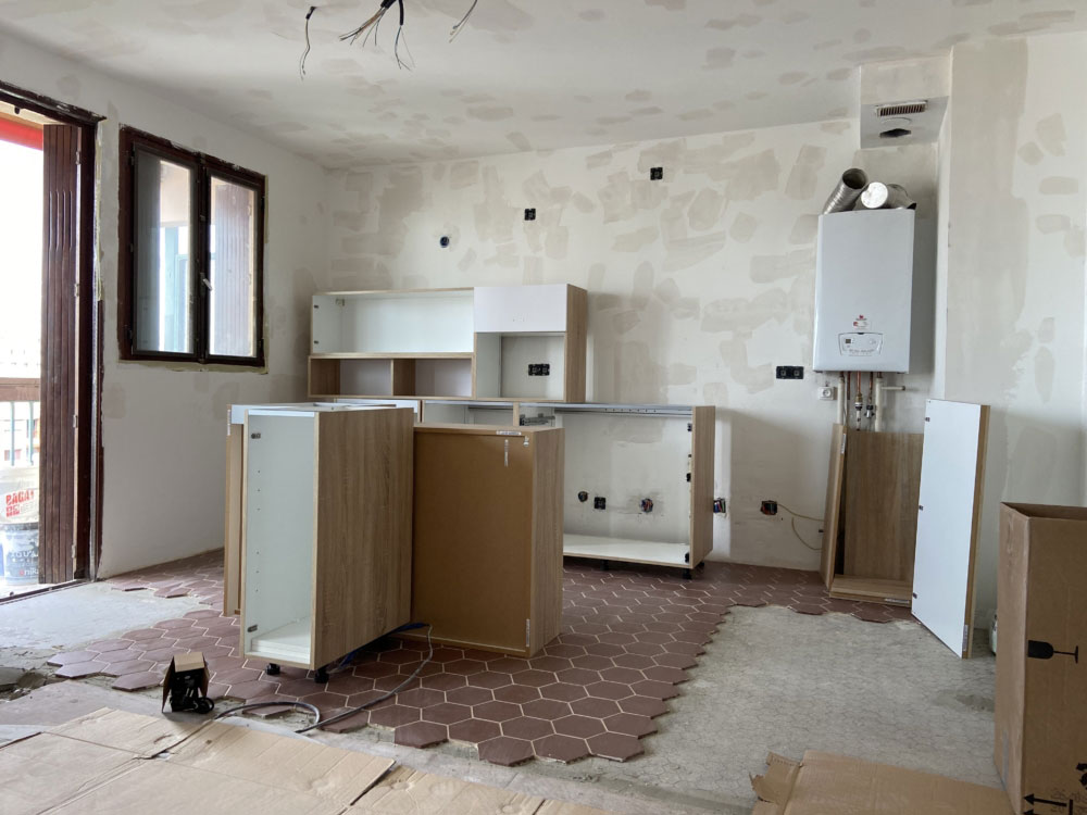 Reprise en peinture intégrale, conception et création d’une cuisine sur ilôt, changement de l’ensemble des menuiseries et création de placard sur mesures.